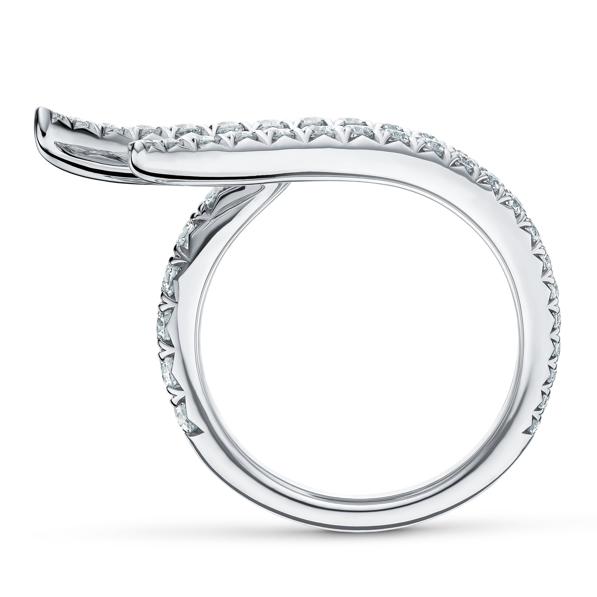 An edgy take on the classic diamond band, the Vela Triple Row Pavé Ring is cool and contemporary and features sleek diamond curves that wrap around the finger.