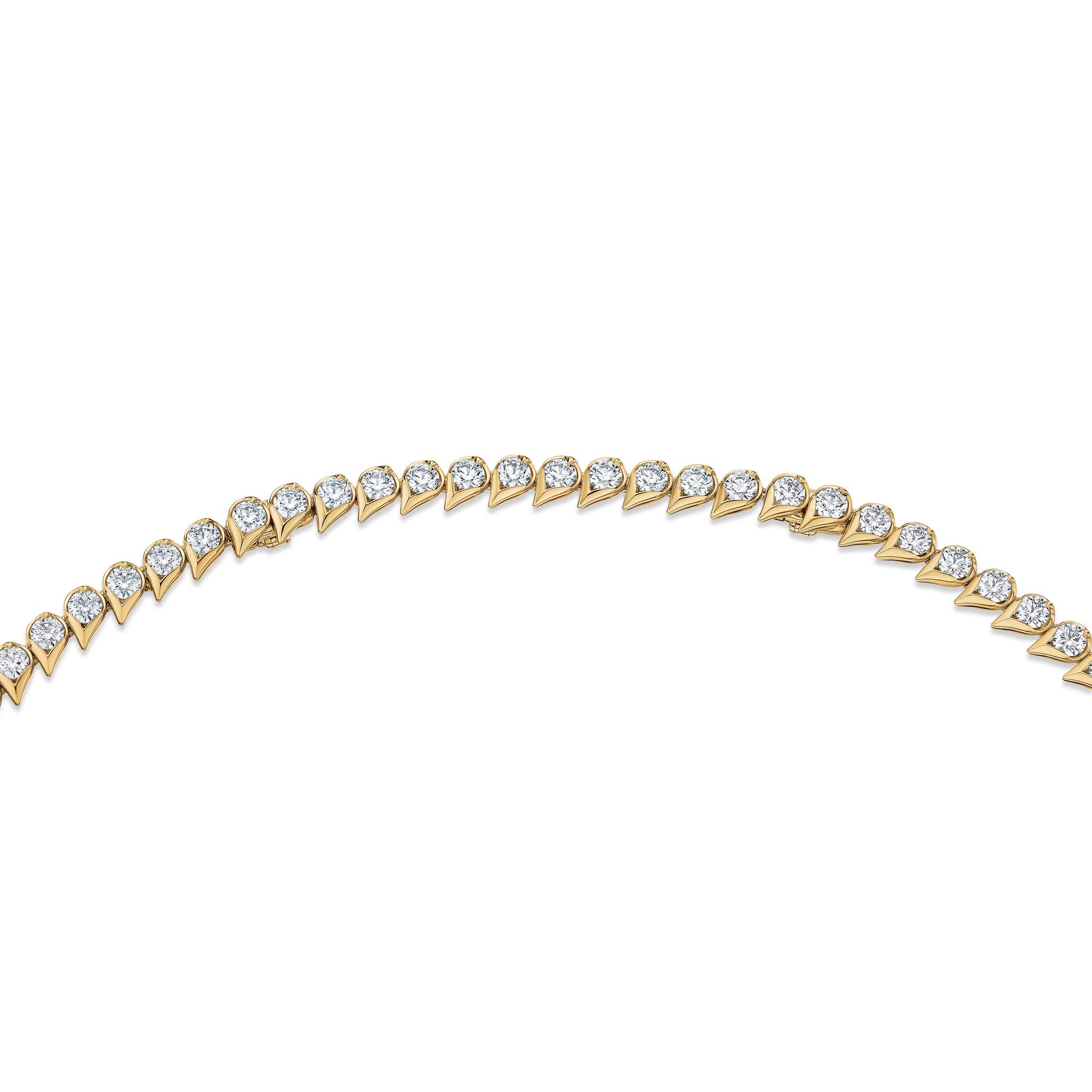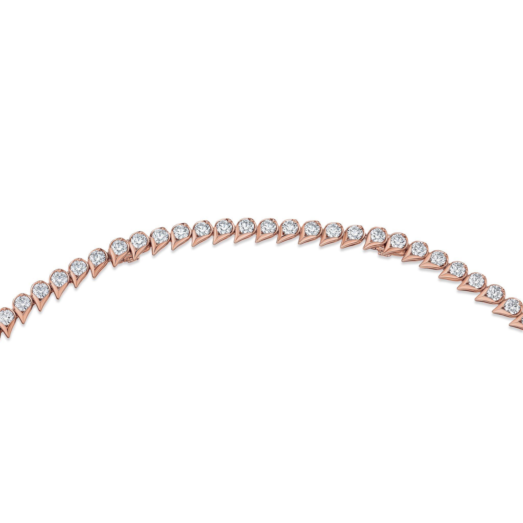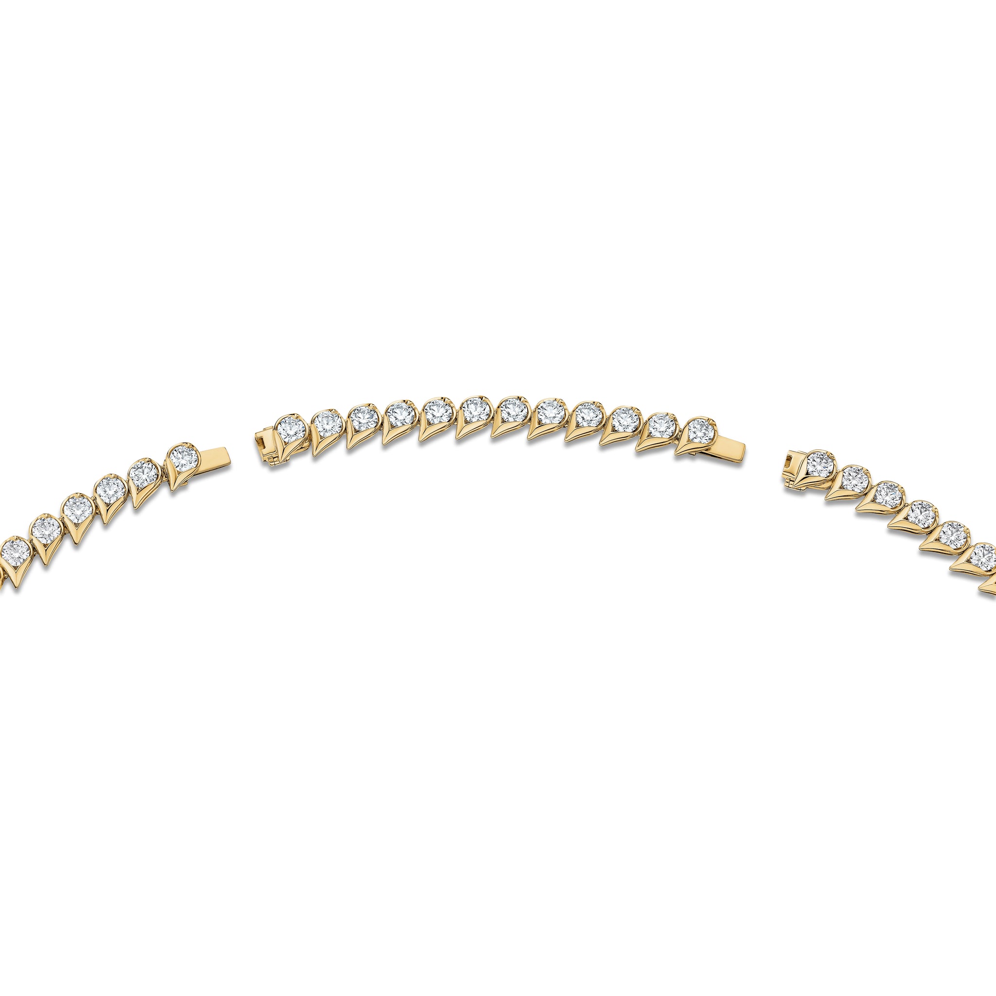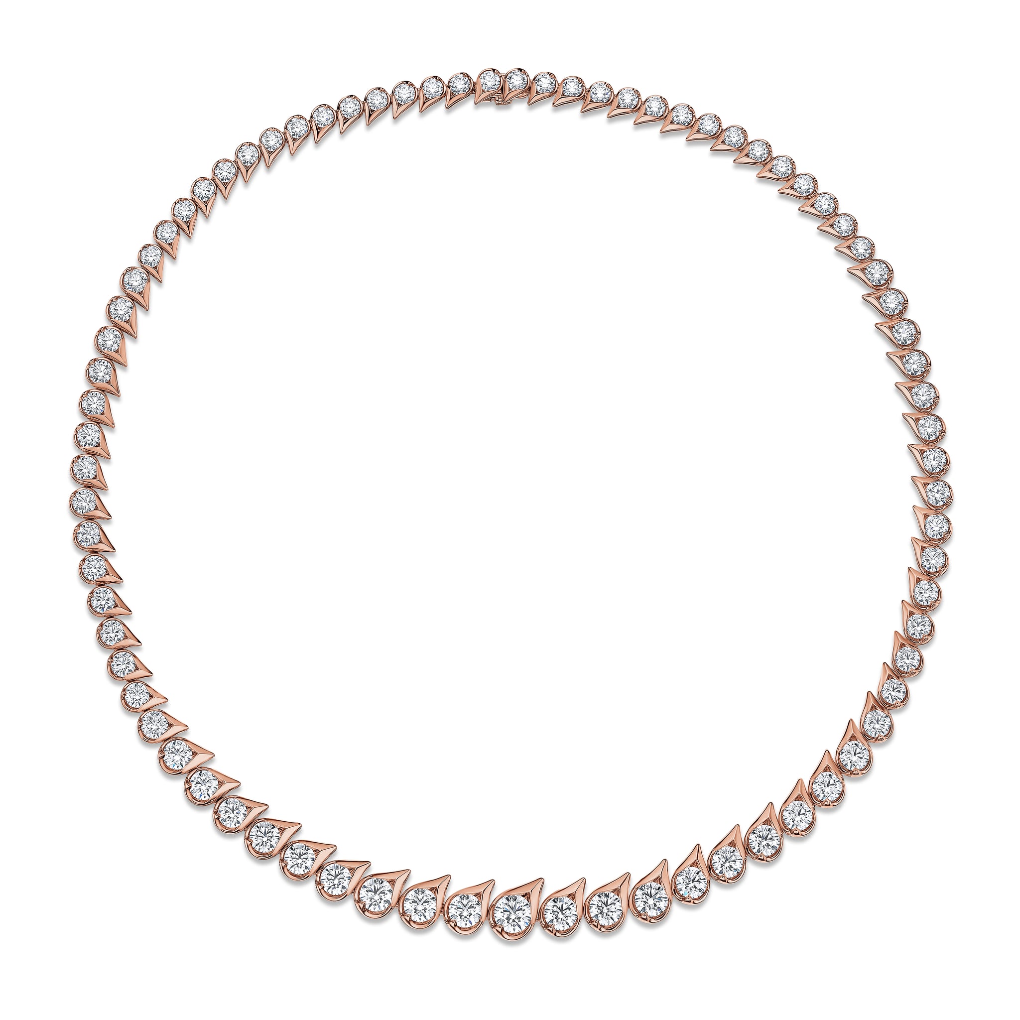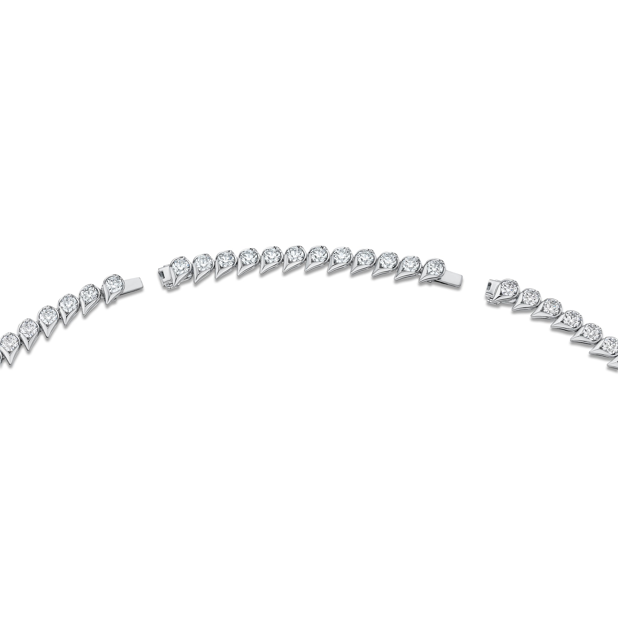 The LU Droplet Graduated Necklace immediately catches the eye with its trail of dew drop-shaped motifs. Each drop is set with a brilliant diamond in graduating sizes, enveloping the neck in continuous sparkle.