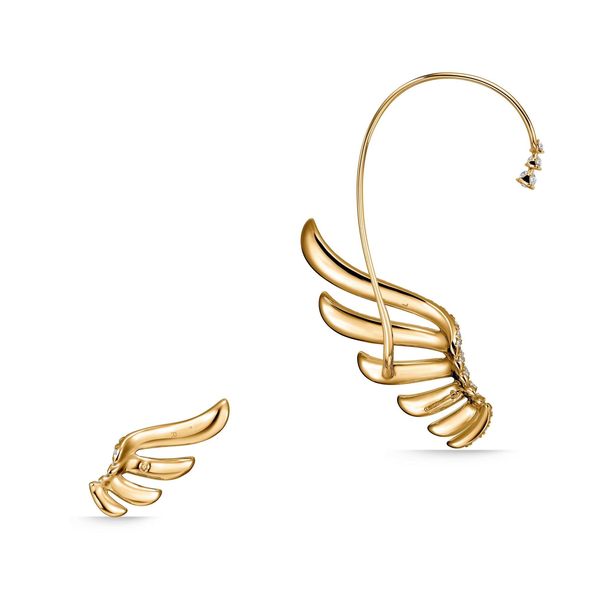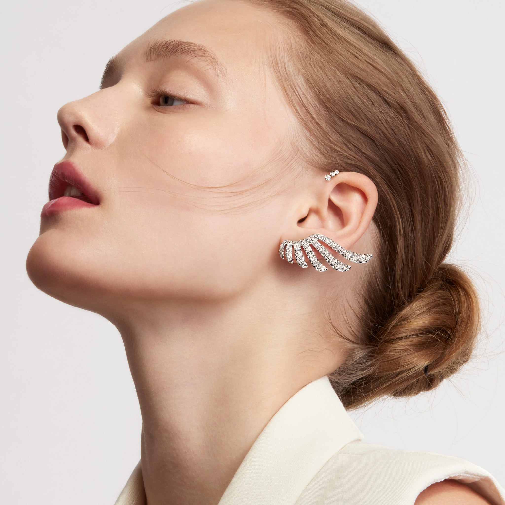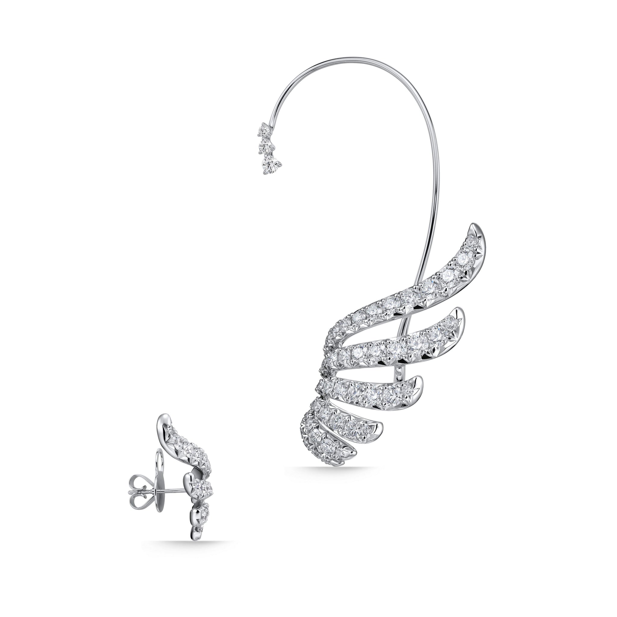 VELA French Cut Pavé Diamond Asymmetrical Climber Earrings are elegant with an edge. This asymmetrical pair features two "feathers" - an ear climber and an extra-large cuff that wraps the ears in glittering diamonds.