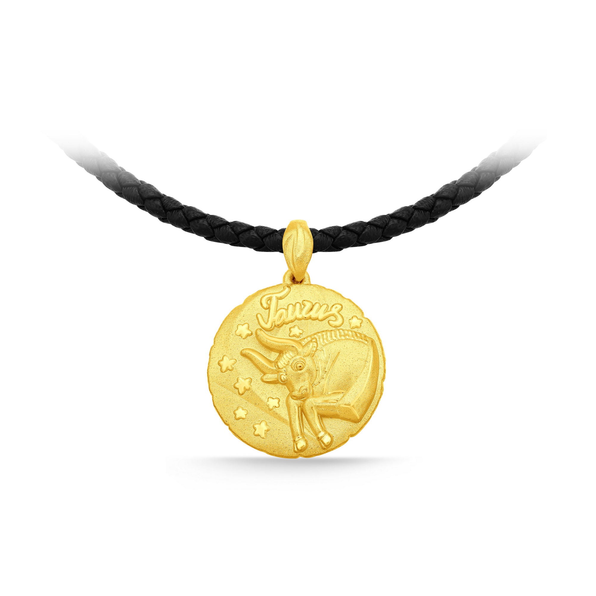 GNCN242_00 24K Zodiac Taurus Small Pendant with Black strap