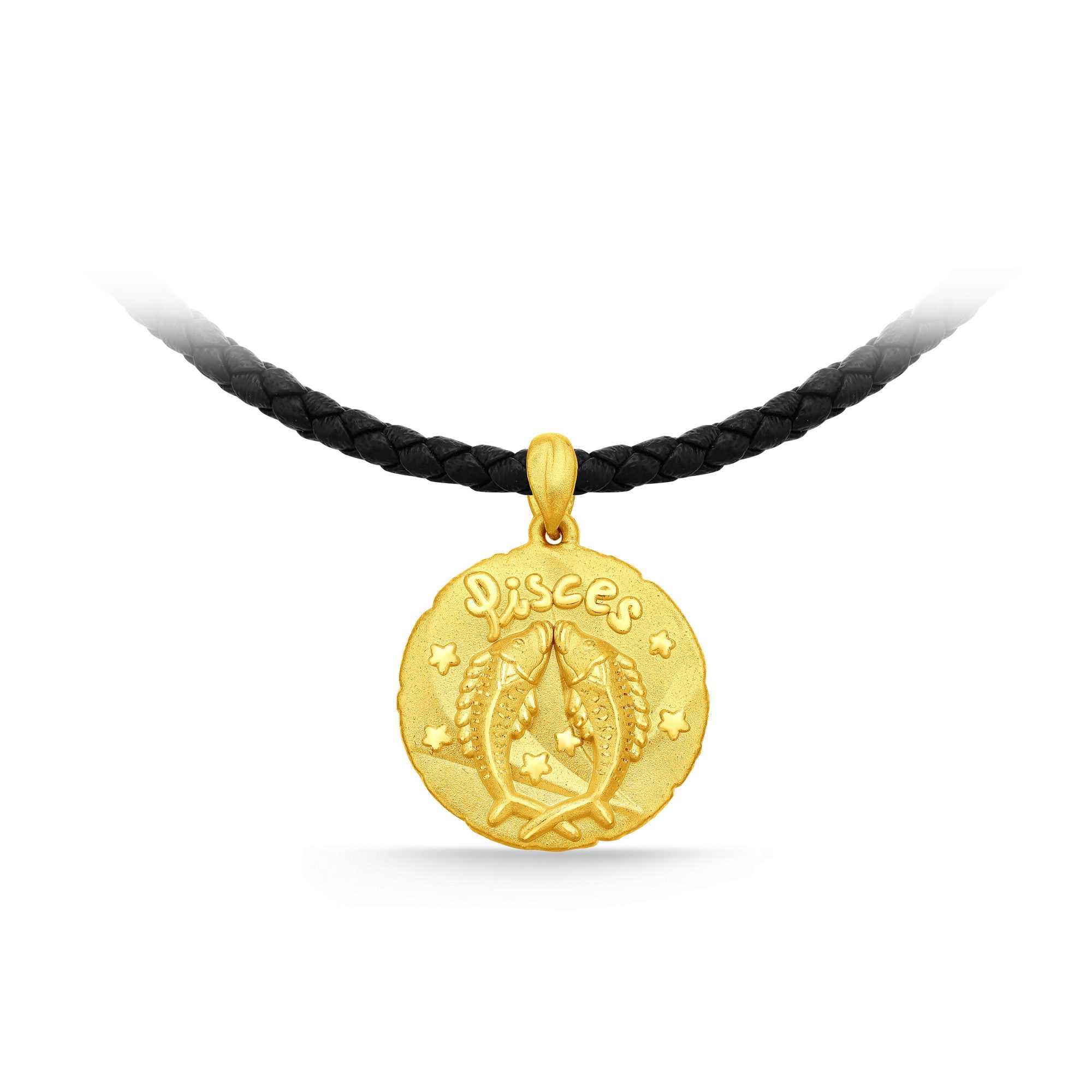 GNCN250_00 24K Zodiac Pisces Small Pendant with Black strap