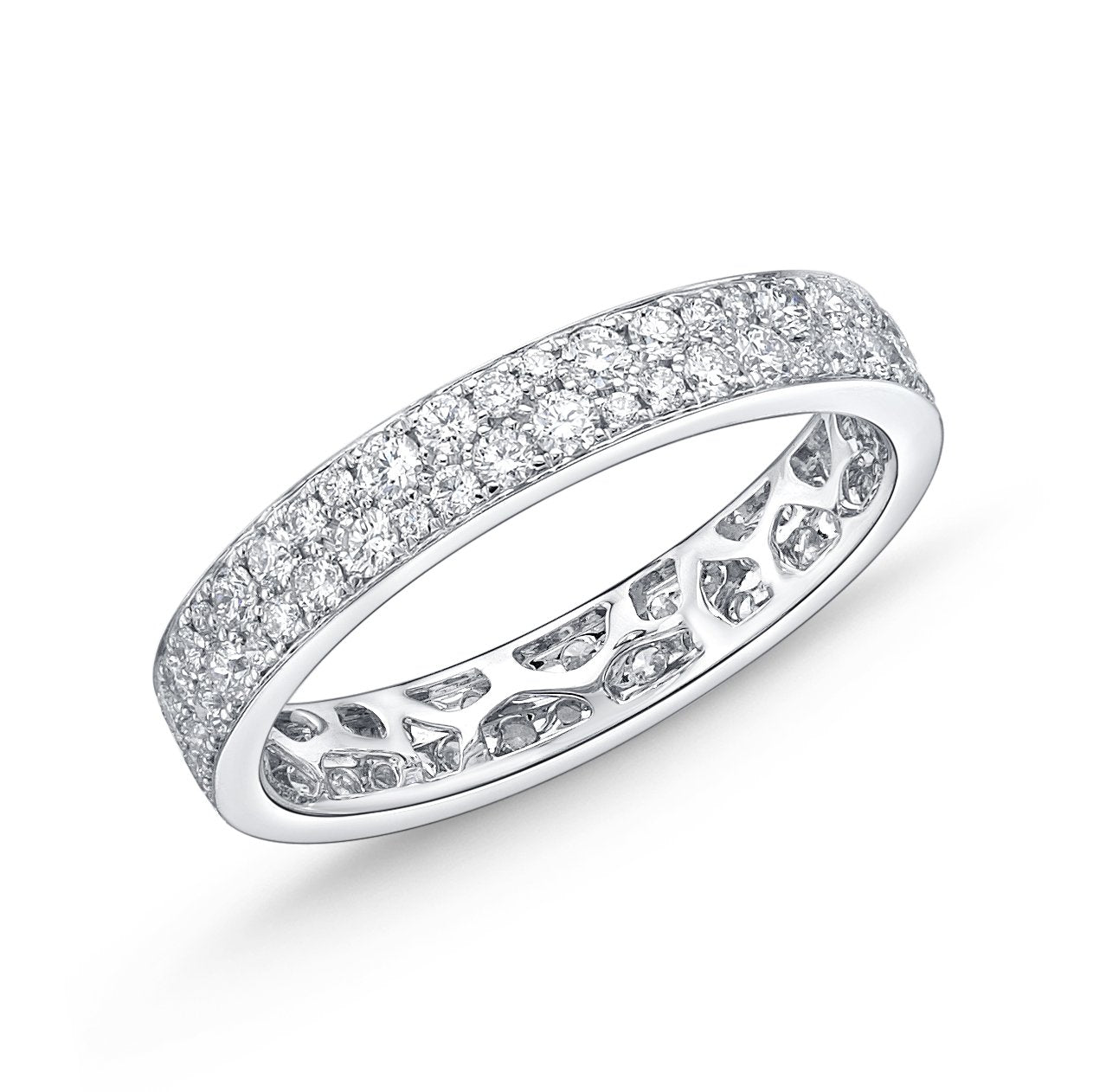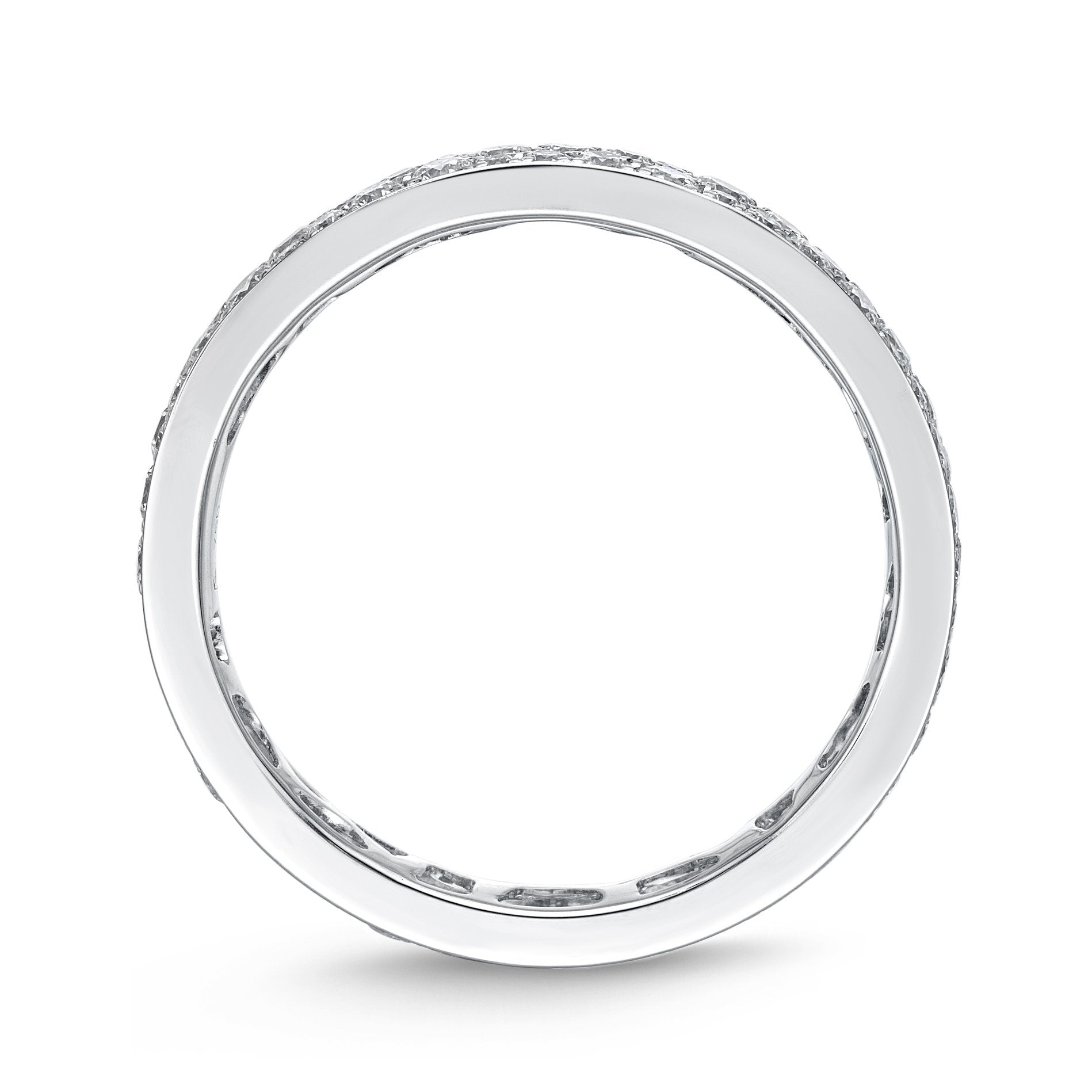 Comfort fit eternity band in snow setting, brilliantly engineered to achieve the same carat weight same price across ring sizes #5 to #7.5