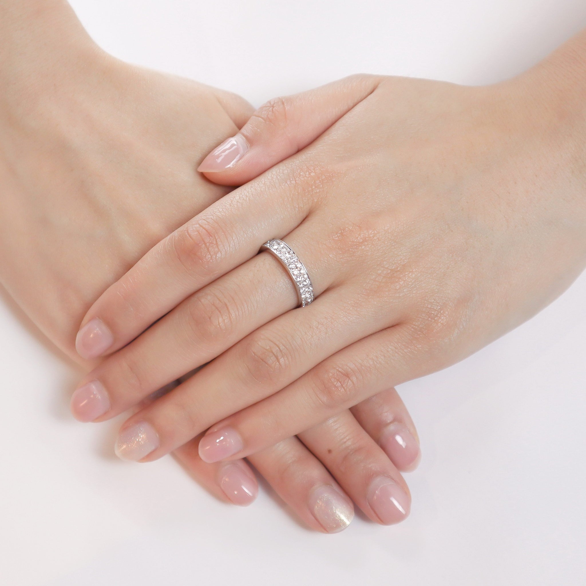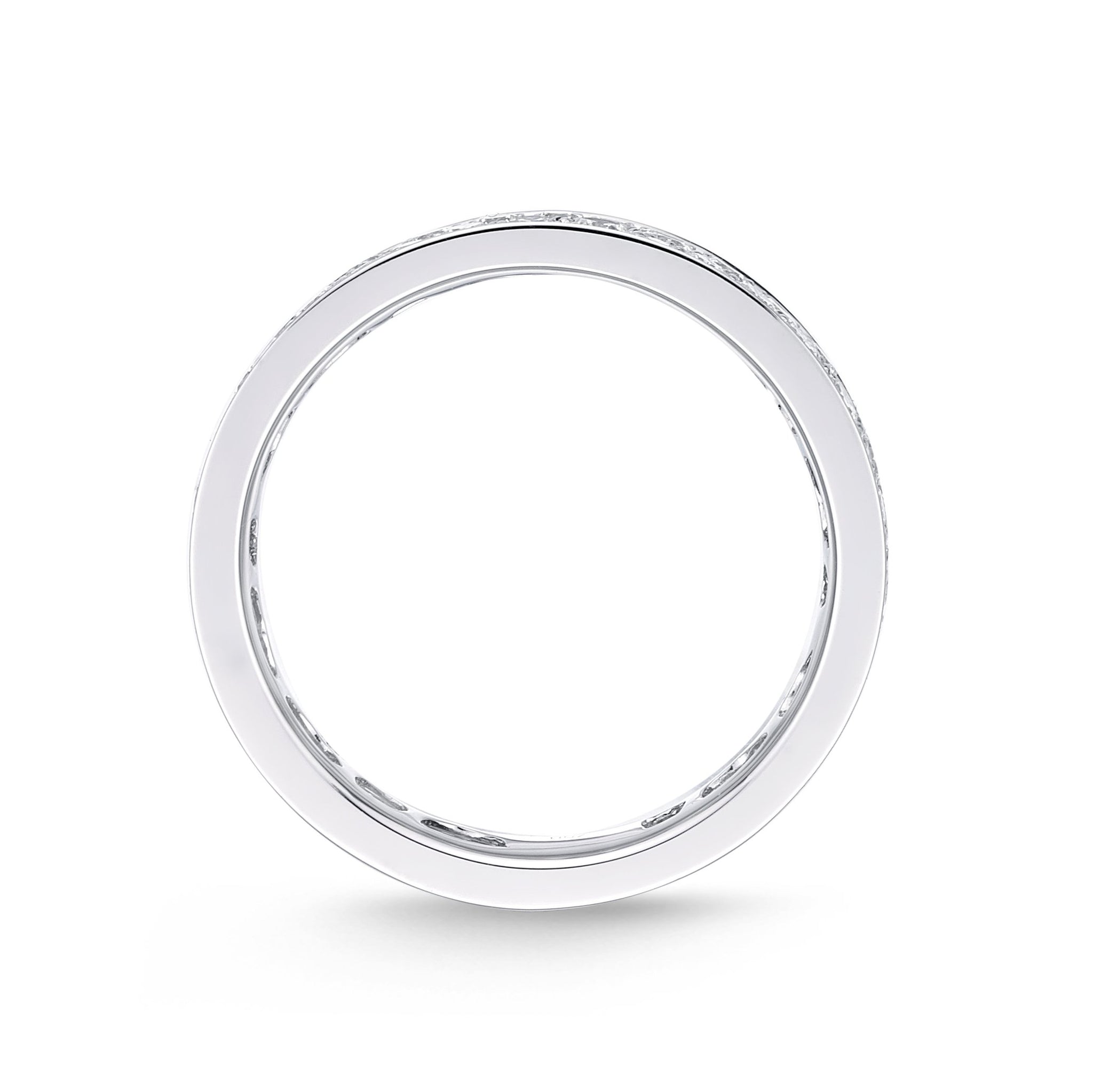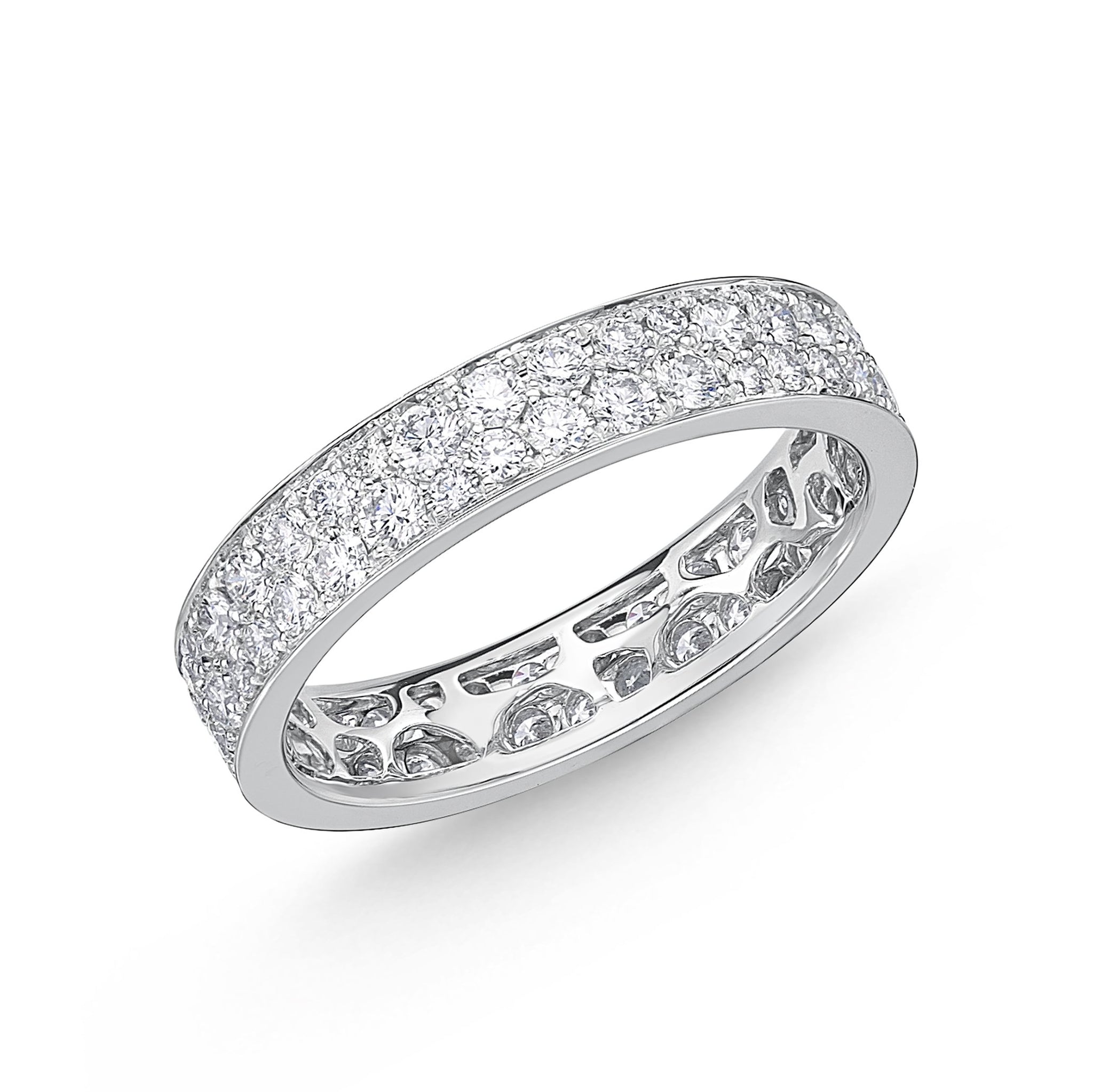 Comfort fit eternity band in snow setting, brilliantly engineered to achieve the same carat weight same price across ring sizes #5 to #7.5