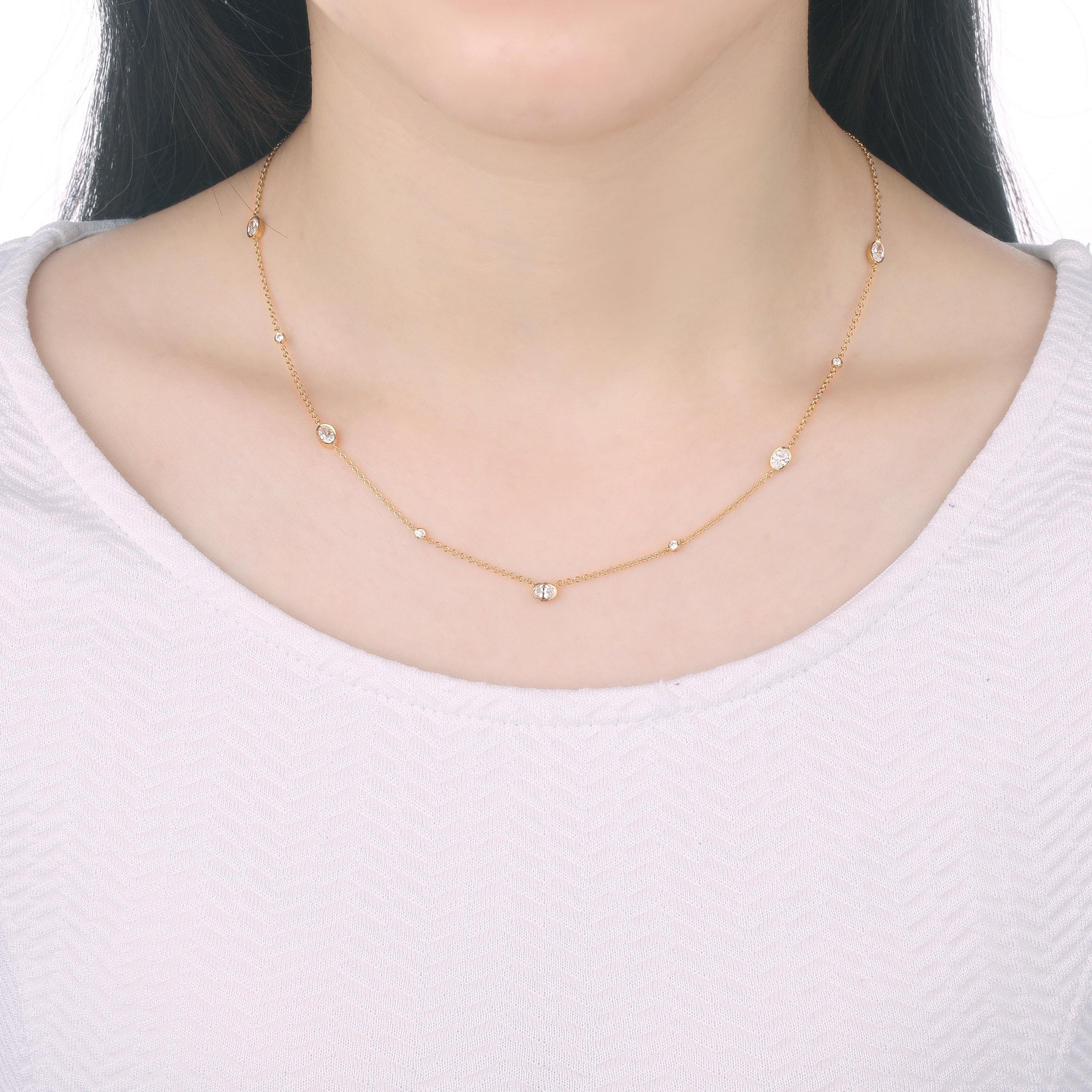 9-Stone Oval-cut Dazzling by the Yard Necklace with Bezel Setting